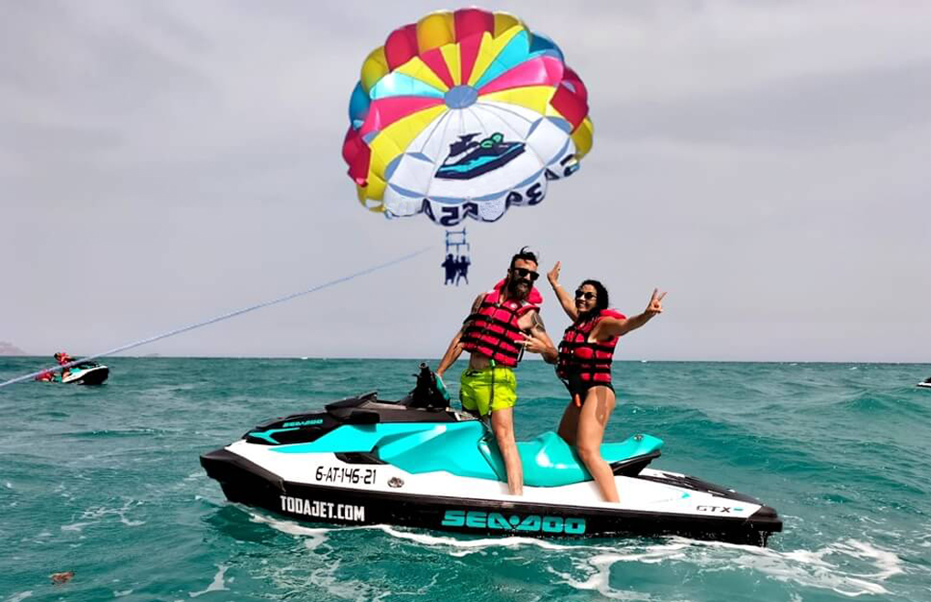 Few summer adventures are as exciting as touring the most enchanting places on the Costa Blanca aboard a jet ski and parascending.